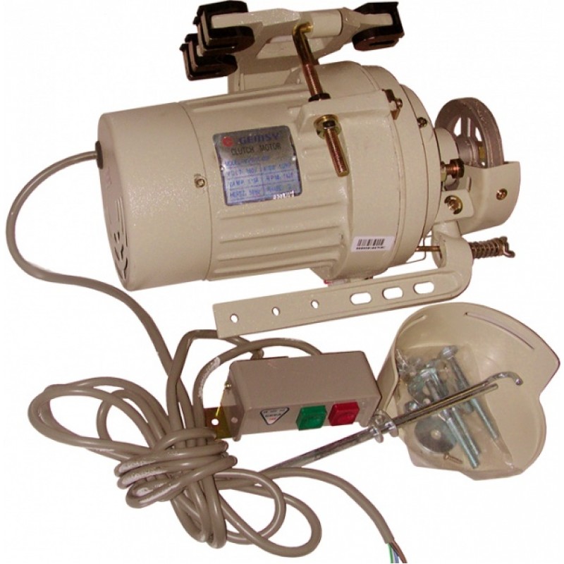 Бесшумный, фрикционный, энергосберегающий электродвигатель с плавной регулировкой скорости и пониженной виброактивностью. Применяется для установки на швейных машинах. Скорость 4000 об/мин